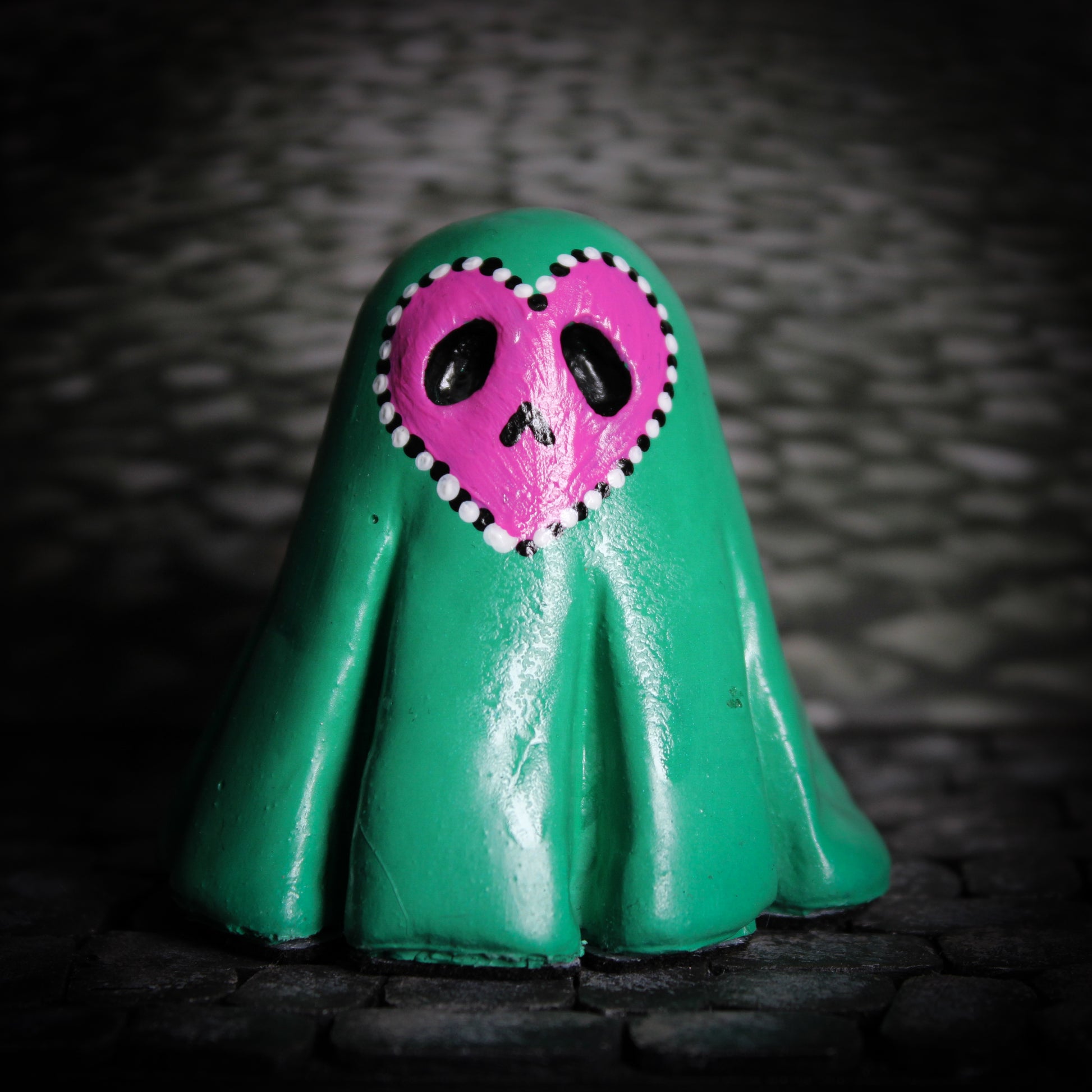 Each concrete ghost in our collection is a one-of-a-kind creation, individually hand poured with care and character. Some remain unpainted, while others are adorned with hand-painted details that make them truly unique. Whether spooky or sweet, these one-off little ghouls add the perfect touch of haunted charm to any shelf, altar or darkly whimsical space.