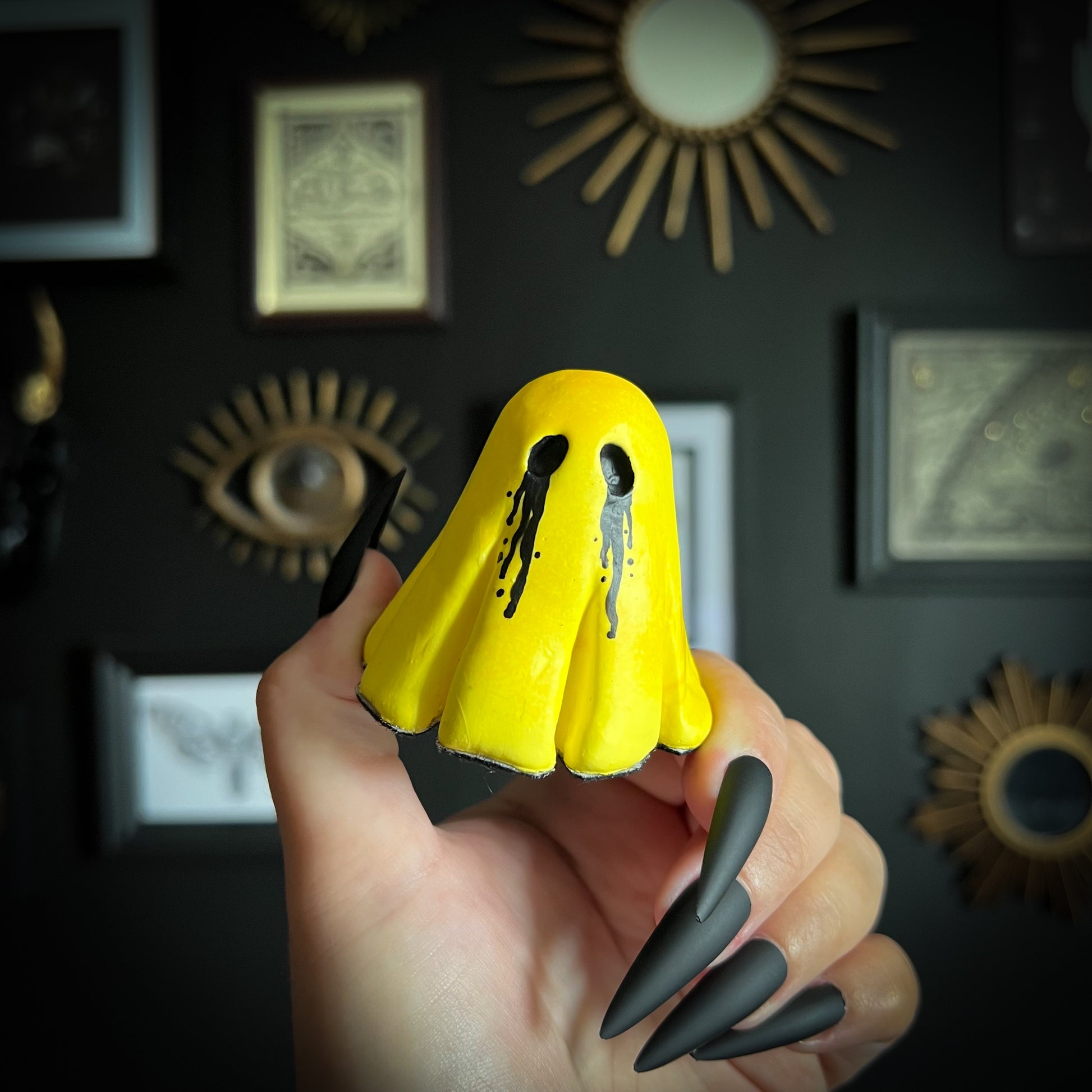 Each concrete ghost in our collection is a one-of-a-kind creation, individually hand poured with care and character. Some remain unpainted, while others are adorned with hand-painted details that make them truly unique. Whether spooky or sweet, these one-off little ghouls add the perfect touch of haunted charm to any shelf, altar or darkly whimsical space.