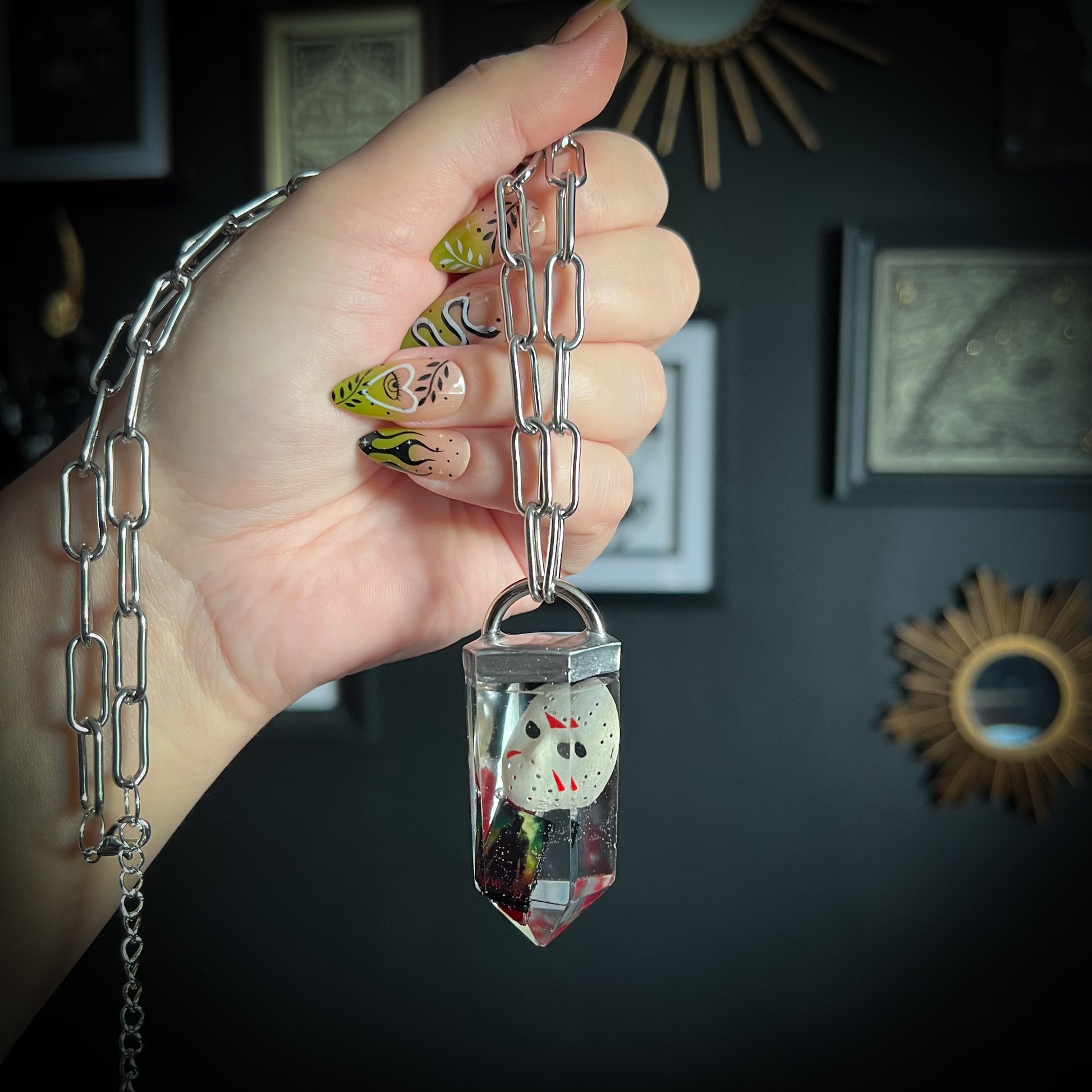 Discover the eerie elegance of our handmade crystal curio necklaces - each one a one-of-a-kind pendant encapsulating gothic charm with moths, butterflies, moss, gemstone shards, clay skulls and other tiny oddities. Darkly whimsical and beautifully macabre, these pieces are perfect for lovers of the strange, mystical and otherworldly.