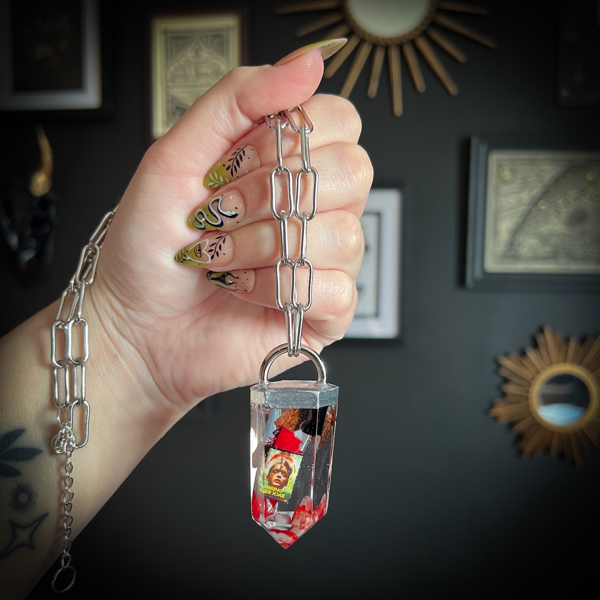 Discover the eerie elegance of our handmade crystal curio necklaces - each one a one-of-a-kind pendant encapsulating gothic charm with moths, butterflies, moss, gemstone shards, clay skulls and other tiny oddities. Darkly whimsical and beautifully macabre, these pieces are perfect for lovers of the strange, mystical and otherworldly.