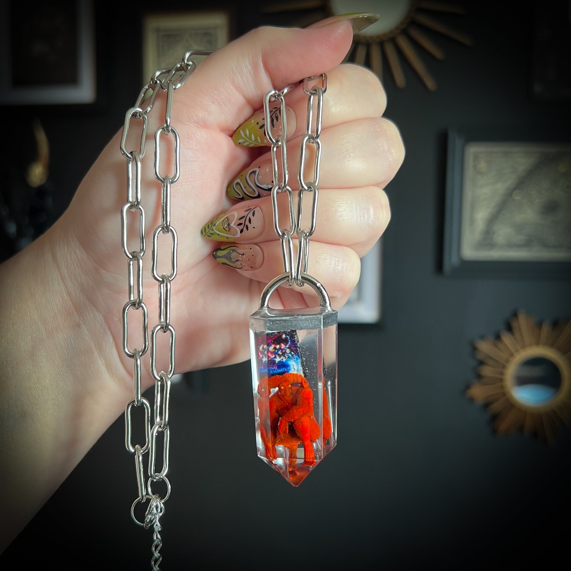 Discover the eerie elegance of our handmade crystal curio necklaces - each one a one-of-a-kind pendant encapsulating gothic charm with moths, butterflies, moss, gemstone shards, clay skulls and other tiny oddities. Darkly whimsical and beautifully macabre, these pieces are perfect for lovers of the strange, mystical and otherworldly.
