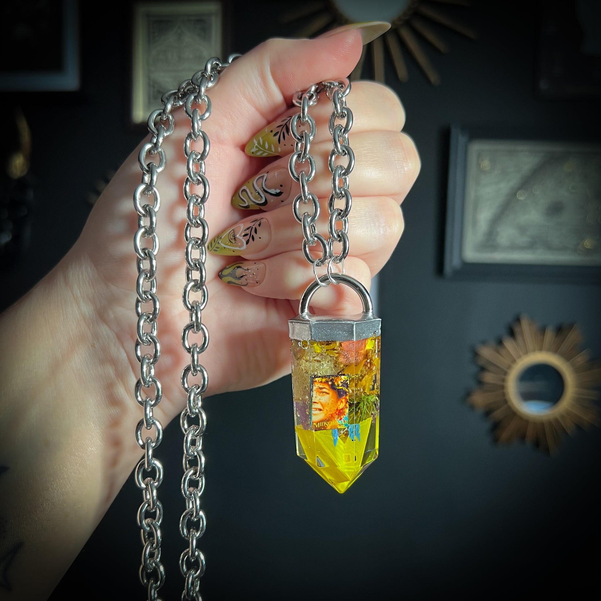 Discover the eerie elegance of our handmade crystal curio necklaces - each one a one-of-a-kind pendant encapsulating gothic charm with moths, butterflies, moss, gemstone shards, clay skulls and other tiny oddities. Darkly whimsical and beautifully macabre, these pieces are perfect for lovers of the strange, mystical and otherworldly.