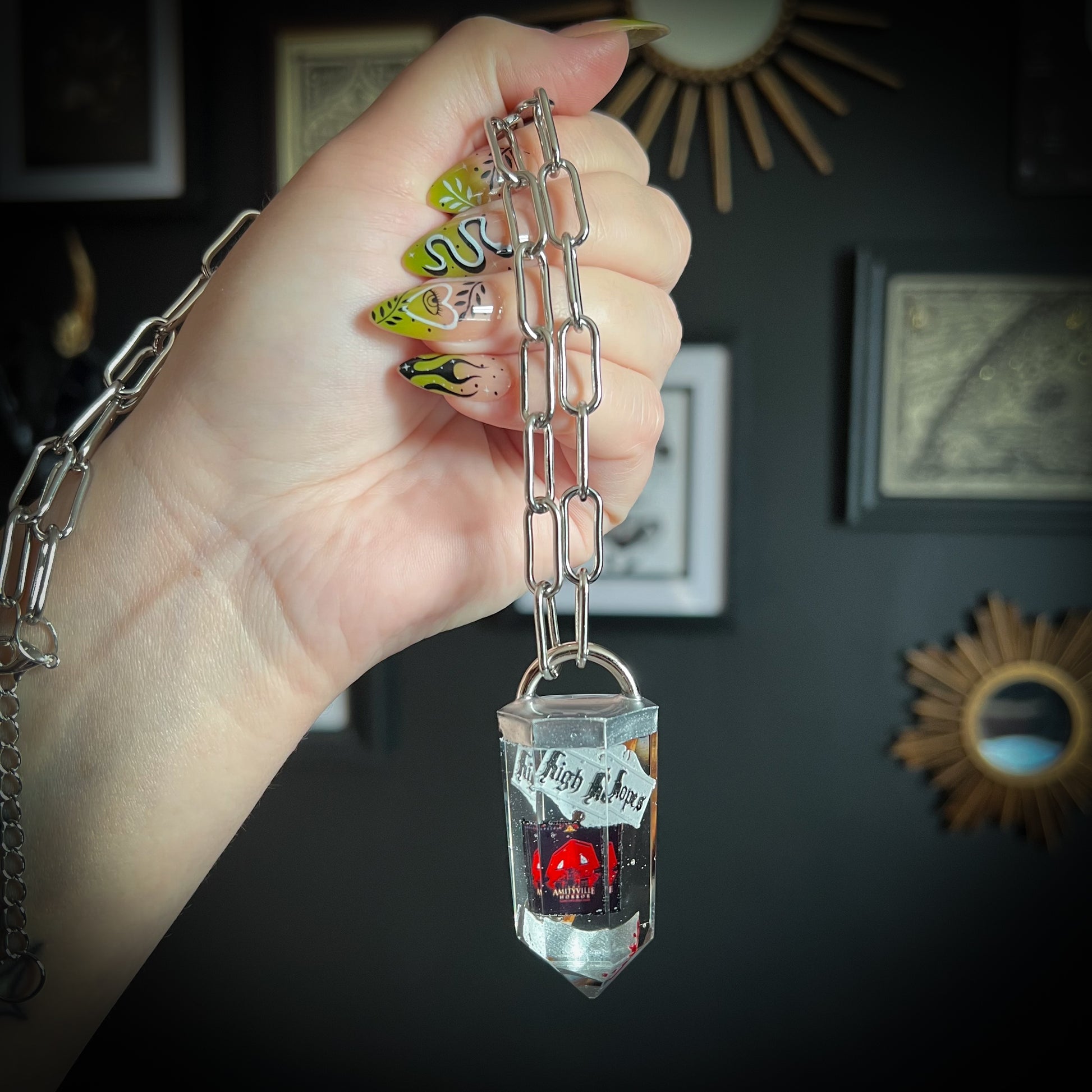 Discover the eerie elegance of our handmade crystal curio necklaces - each one a one-of-a-kind pendant encapsulating gothic charm with moths, butterflies, moss, gemstone shards, clay skulls and other tiny oddities. Darkly whimsical and beautifully macabre, these pieces are perfect for lovers of the strange, mystical and otherworldly.