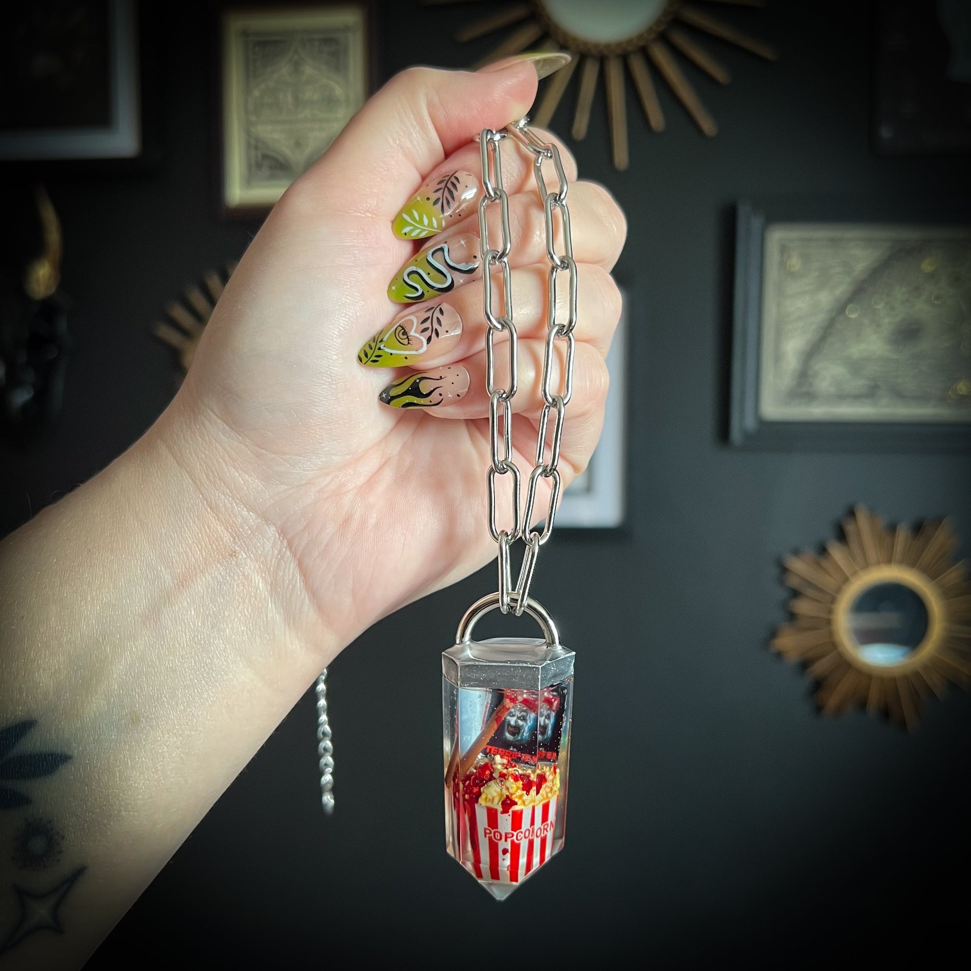 Discover the eerie elegance of our handmade crystal curio necklaces - each one a one-of-a-kind pendant encapsulating gothic charm with moths, butterflies, moss, gemstone shards, clay skulls and other tiny oddities. Darkly whimsical and beautifully macabre, these pieces are perfect for lovers of the strange, mystical and otherworldly.